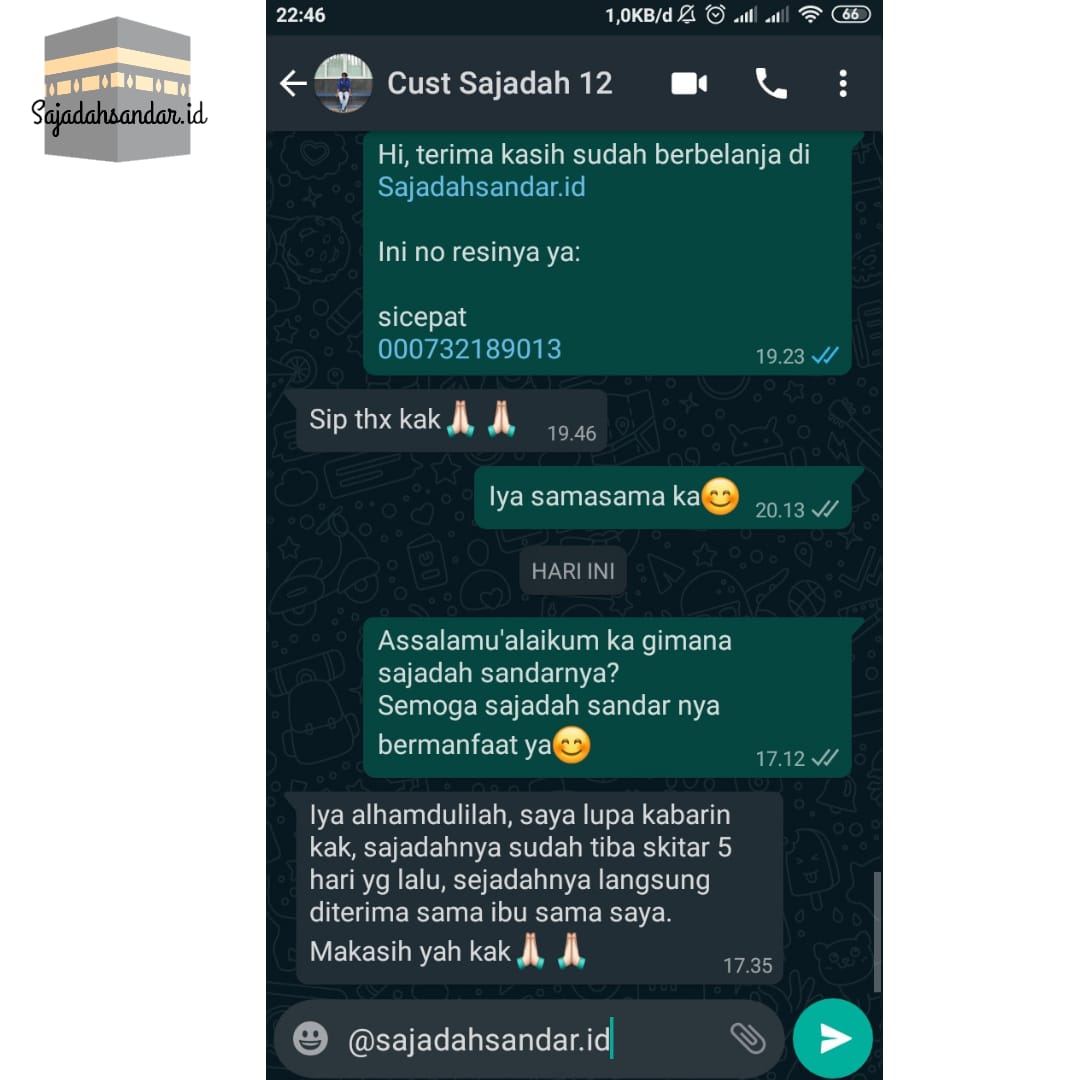 Sejak 2017, Sajadahsandar.id telah menjual lebih dari 1000pcs sajadah ke seluruh Indonesia, Suatu kepuasan untuk kami jika dapat memberikan pelayanan terbaik untuk pelanggan kami. silakan hubungi kami di +62878 8798 7644 or email us at cs@sajadahsandar.id